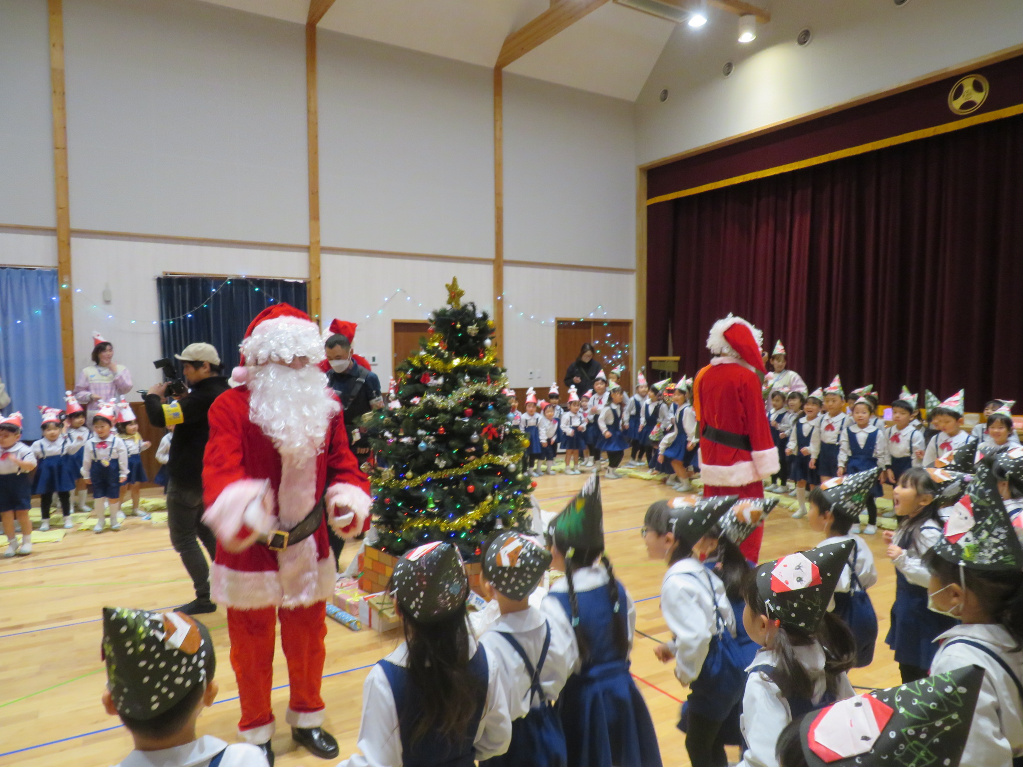 サンタさんと一緒に踊ったり、サンタさんからプレゼントをもらったり、