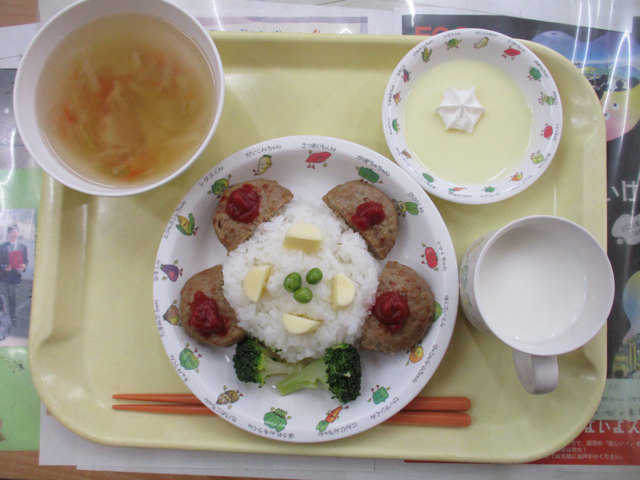いつもはグリンピースを残す子も、今日は全部食べていました。 帰りの会で感想を聞くと、 「くまをつくった」「私はうさぎ」「お花を作った」 そして「おいしかった」 と、楽しそうに教えてくれました。