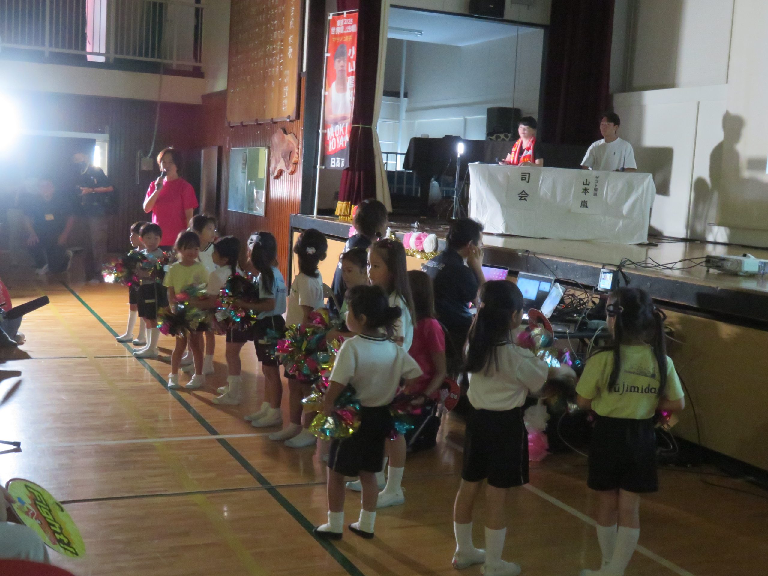 そこに年長さんがお声がけいただき、小山選手の応援に参加しました。